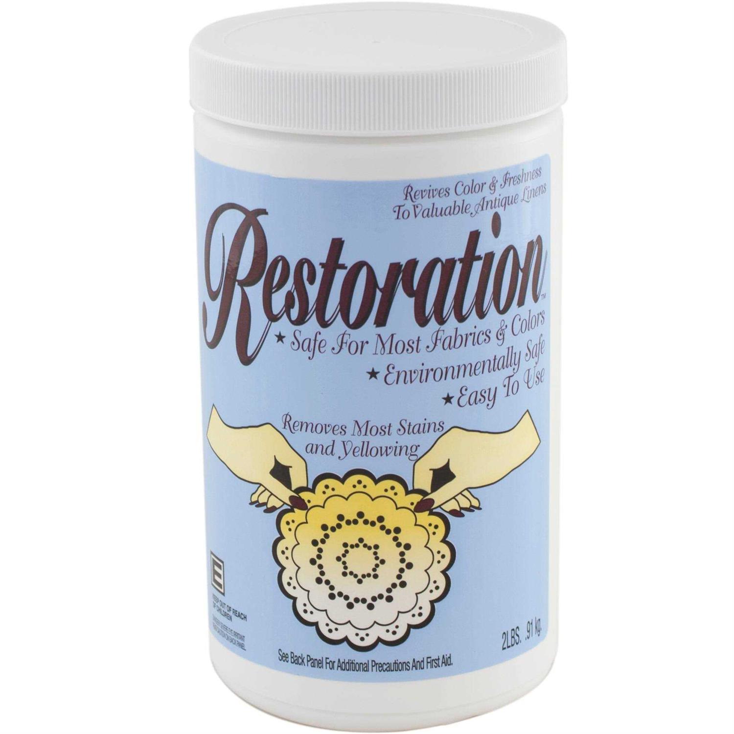 Restoration Fabric Cleaner 2lb- Restoration is excellent for antique linens. It removes most stains like coffee, blood, tea, grape juice, wine, ketchup and much more. Also removes yellowing, mystery spots and yellowing caused by water damage, age, UV rays and even discoloured fold lines. Will not leave residue or harm fibres in any way! Restoration can be used on almost any textile. Has no odour and contains no chlorine. Not suitable for silk fabrics or woolen carpets.2lbs (907g) canister. Laundry Care, Engleside, Restoration Fabric Cleaner 2lb, Fabric Care, General Store, hide-notify-btn, Laundry Care, LS24goin, onORDcd, pingoin, prgoin, SAD, SDOUT, Stain Removal, USA.