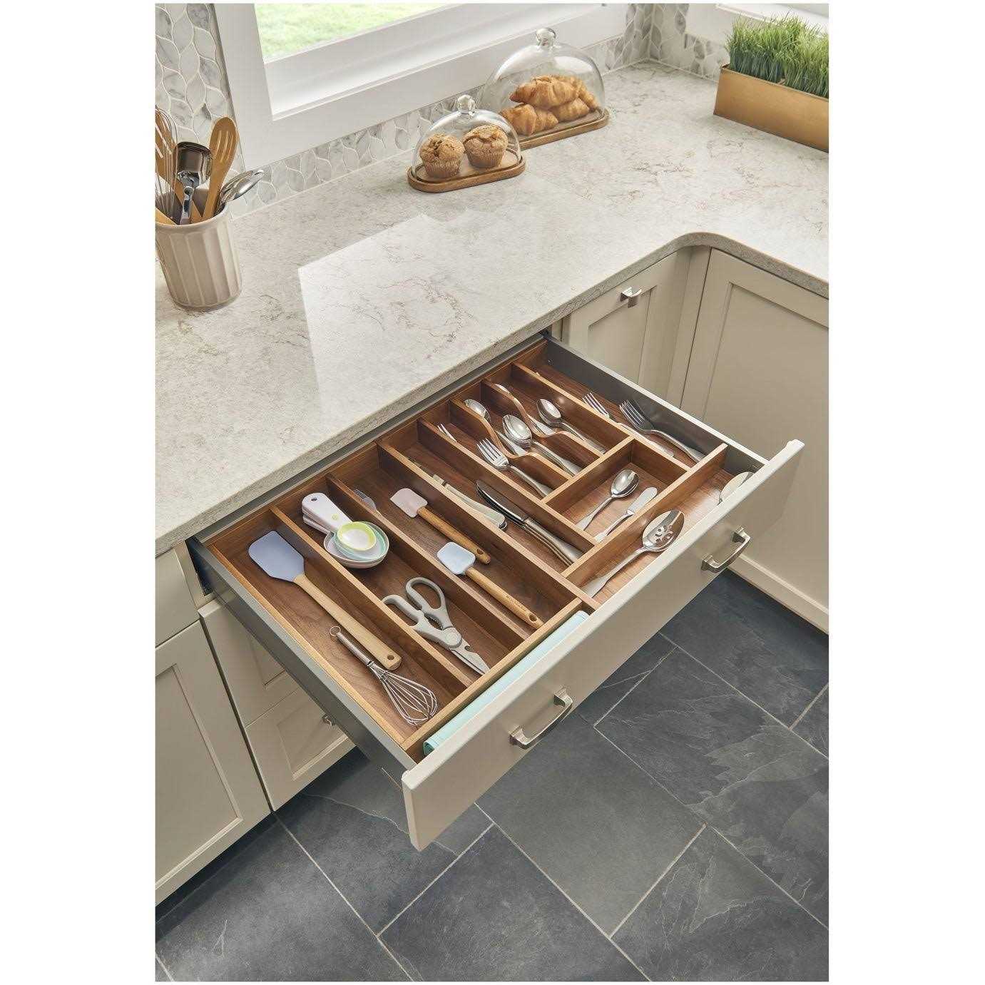 You are purchasing a Rev-A-Shelf wood divider block only, that can be used with most all of our wood drawer inserts. This divider adds a nice clean look when you combine multiple drawer inserts into a large kitchen drawer. Product Includes: (1) Wood dividerDivider is used when putting (2) wood drawer organizers in (1) drawerDrawer accessories sold separately Size: 2-3/8.