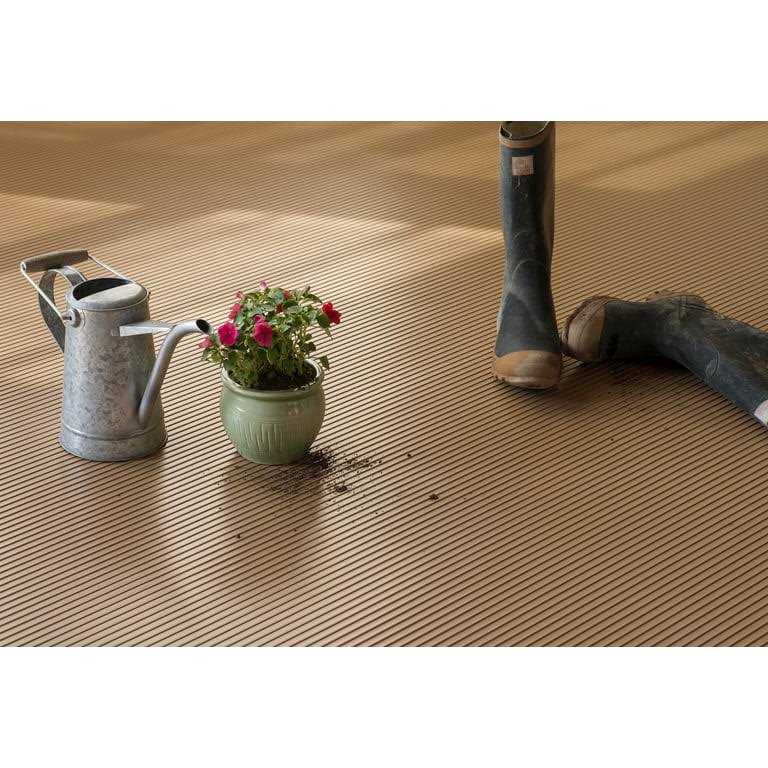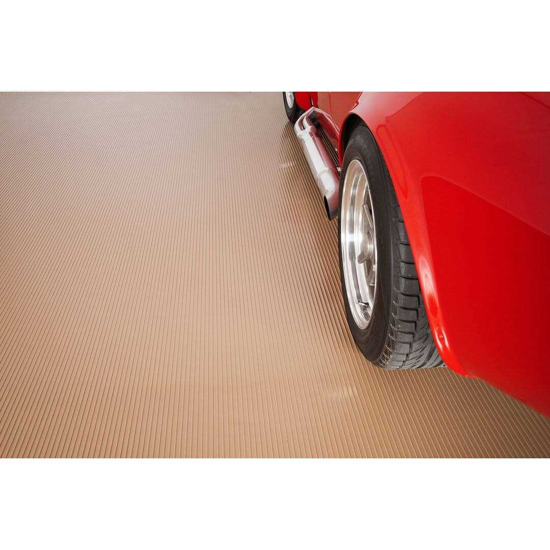The G-Floor Garage Floor Cover/Protector features a ribbed design that contains moisture and debris, in sandstone. The 5 ft. x 10 ft. size covers 50 sq. ft. and is ideal for protecting floor areas in workshops or underneath motorcycles, ATVs, mowers, snowmobiles and golf carts. It is made of a tough, specially formulated 100% polyvinyl material that protects floors and resists common fluids and contaminants such as oil, anti-freeze, brake fluid, gasoline and even battery acid. Helps prevent concrete deterioration and provides an economical and easy solution to cover old cracked and stained floors. Commercial grade, Tough enough to be used in the garage, attractive enough to be used anywhere: basements, laundry rooms, trailers, vehicles, workshops, warehouses, exercise rooms, offices and utility rooms. The G-Floor Garage Floor Cover/Protector features a ribbed design, in Sandstone, that keeps moisture and debris contained.