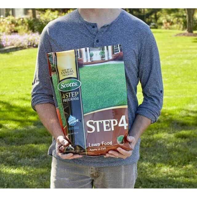 Using Scotts STEP 4 Fall Lawn Food is a great way to strengthen your lawn before the winds of winter cut across it. It helps your lawn build stronger roots for the winter. You’ll see a thicker, greener lawn in spring thanks to using Scotts STEP 4 Fall Lawn Food. Utilize the entire Scotts 4 Step program for a better lawn! Feeds to strengthen grass for a better lawn next spring Apply in fall to any grass type Fall is a great time to feed Part of the Scotts 4 Step Annual Program Builds strong roots for tough winter months Apply to a wet or dry lawn on a calm day. No need to water in, however, during dry periods, watering will hasten greening. For best results, apply using a Scotts spreader.