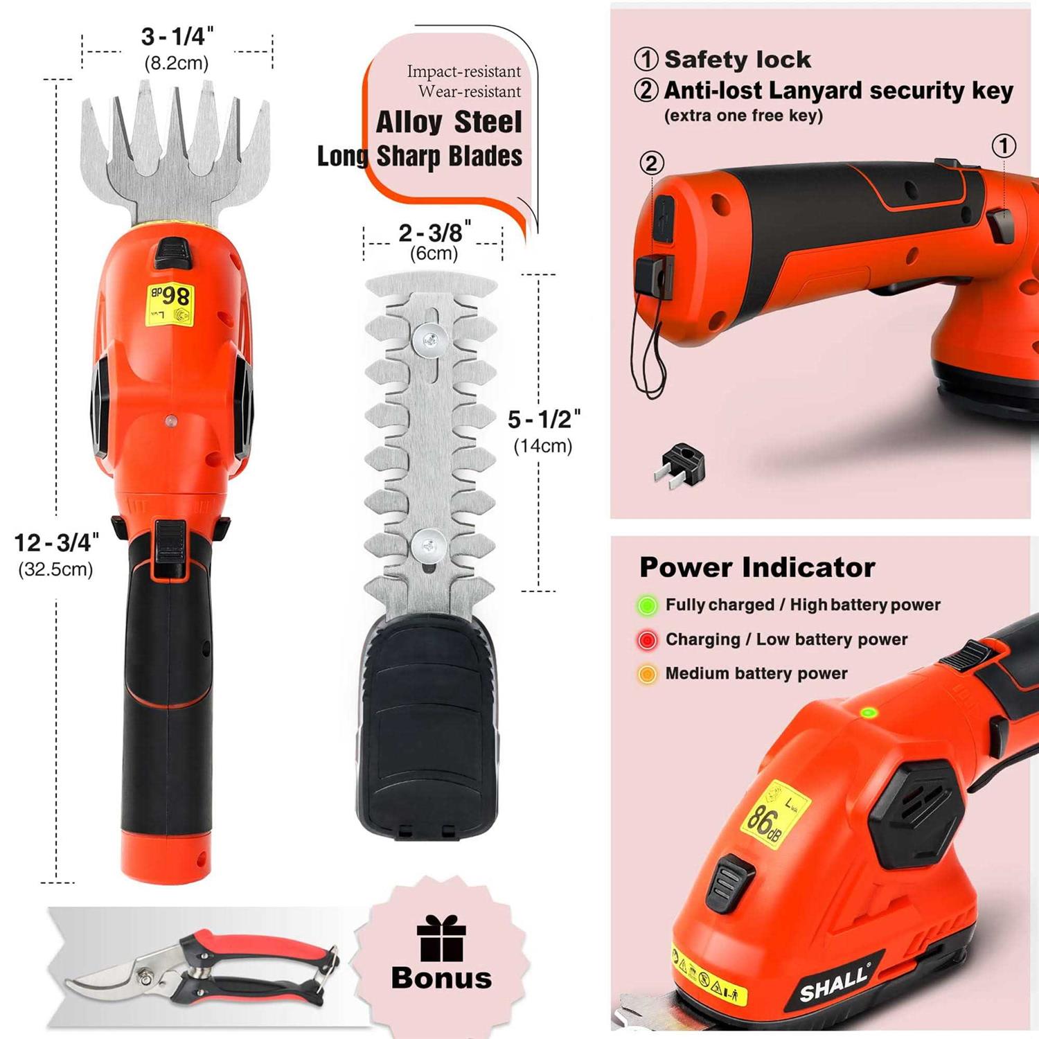 Shall Cordless Grass Shear & Hedge Trimmer – 7.2V Electric Shrub Trimmer 2 in 1