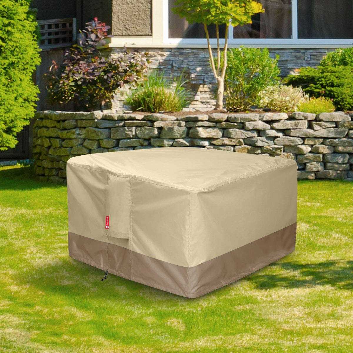 Fire Pit Covers by SheeChung. Details:: Protect your fire pit when it’s not in use with a handsome and durable cover. Product Features: – Designed to fit for square fire pits up to 36”L x 36”W, cover is 24” high – 600D premium quality material cover waterproof and weather resistant to protect your fire pit in harsh outdoor conditions – Adjustable draw-string tightens easily resulting in a custom-like fit – Structured air vents at two sides stay open to prevent wind lofting, and are lined with mesh barriers. Waterproof, and breathable. – The heavy duty ribbon weaving on air vents makes removal and adjustment of your cover convenient and hassle-free.Only one fire pit cover included, fire pit not include.