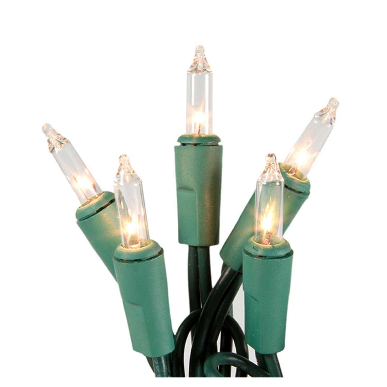 - Clear Shimmering Add-A-Set Indoor & Outdoor Use 31.1 ft. Total Length 28.8 ft. Lighted Length 24 in. Lead 3.5 in. Spacing 3.5 in. End Spares