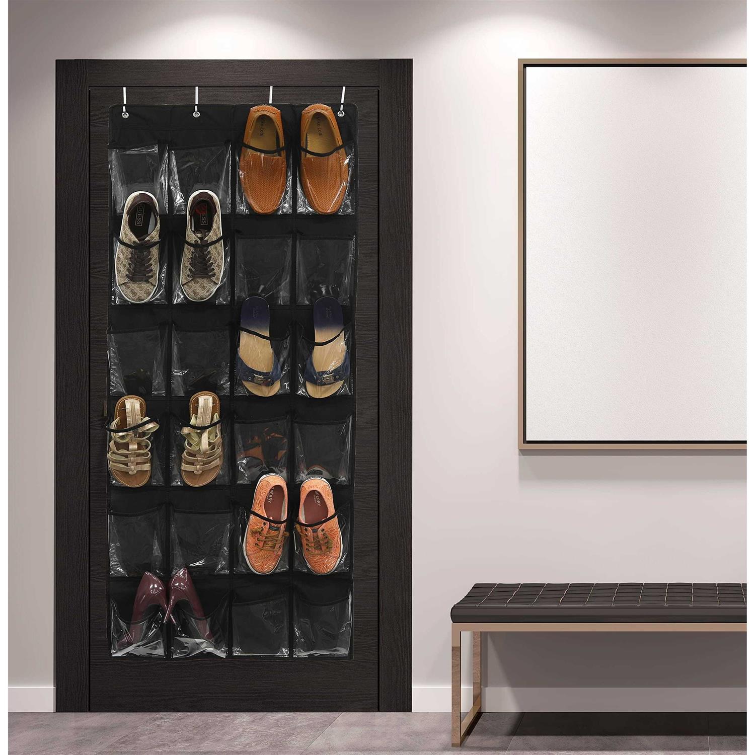 Over the Door Shoe Organizers by Simple Houseware. Details:Simple Houseware 24 Pockets Large Clear Pockets Over The Door Hanging Shoe Organizer, Black (56″ x 22