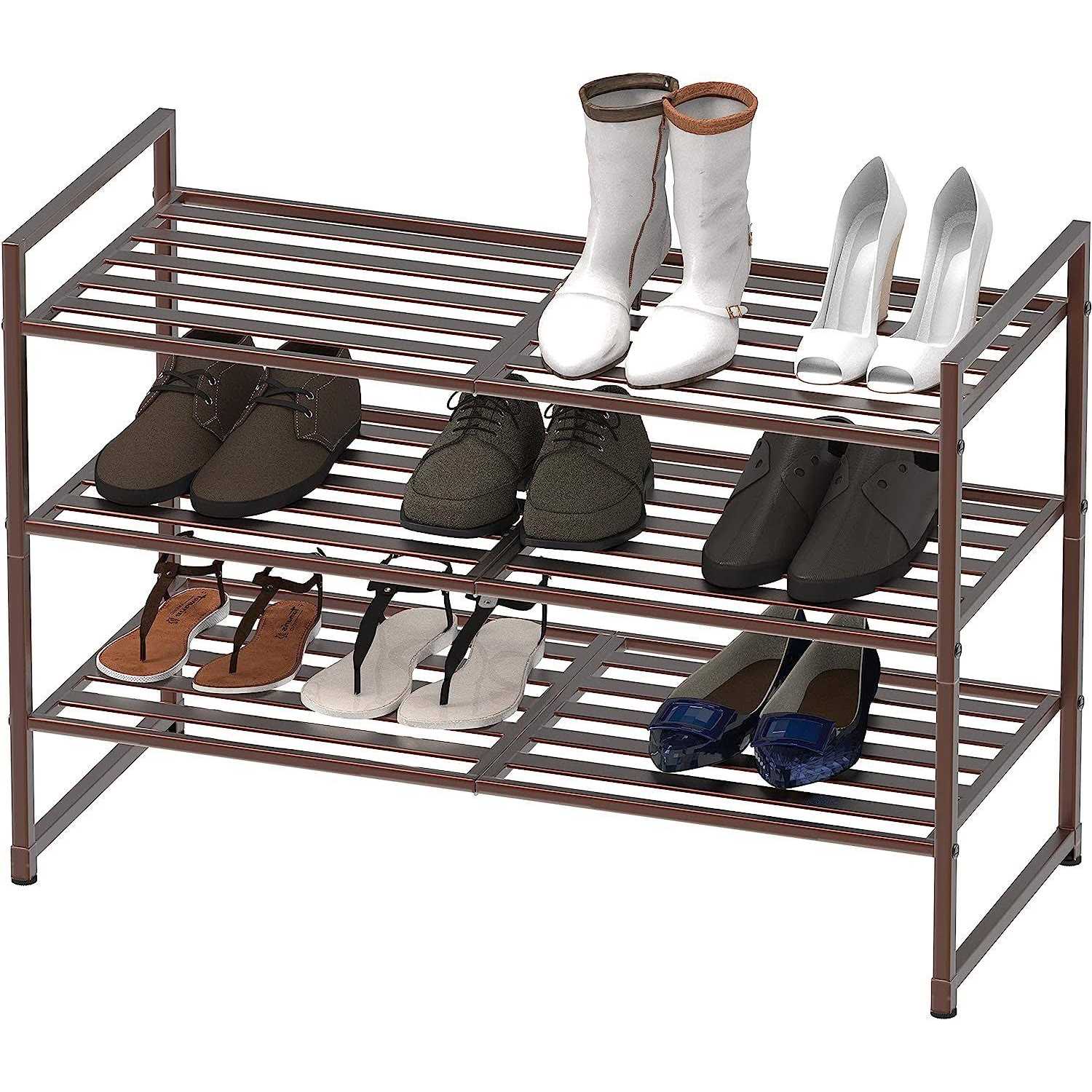 Simple Houseware 3-Tier Stackable Metal Panel Shoes Rack, Bronze