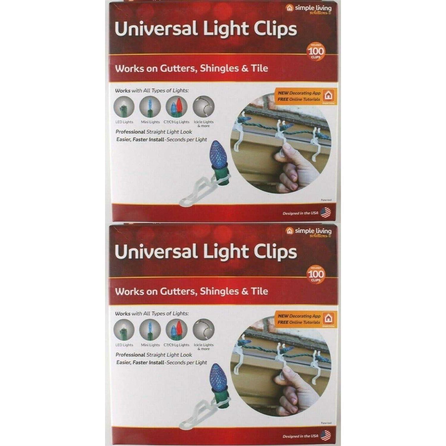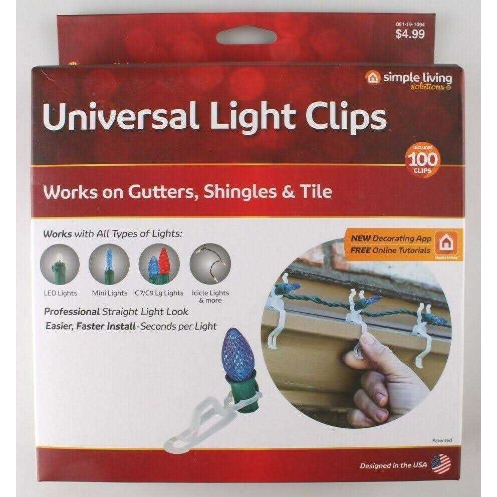 Take the stress out of the holiday season with Simple Living Solution’s Universal Light Clips. These clips provide a convenient and safe way to hang your light strands during the holiday season. Easily install light clips to gutters and shingles. Each box includes 100 white clips. Clip design offers a professional, straight light look. The Universal Light Clips work great on all kinds of lights including LED, Incandescent, Decorative, Mini, C7, Icicle, and other various light strands.