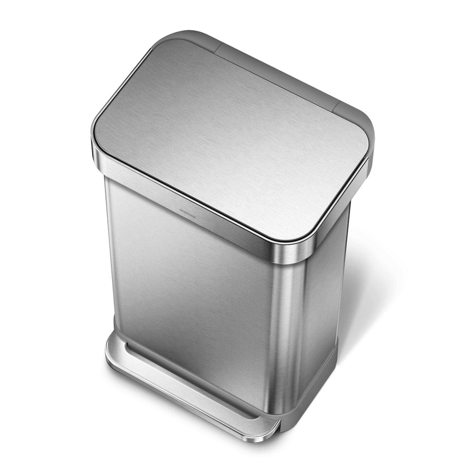simplehuman 55-Liter Brushed Stainless Steel Rectangular Step Trash Can