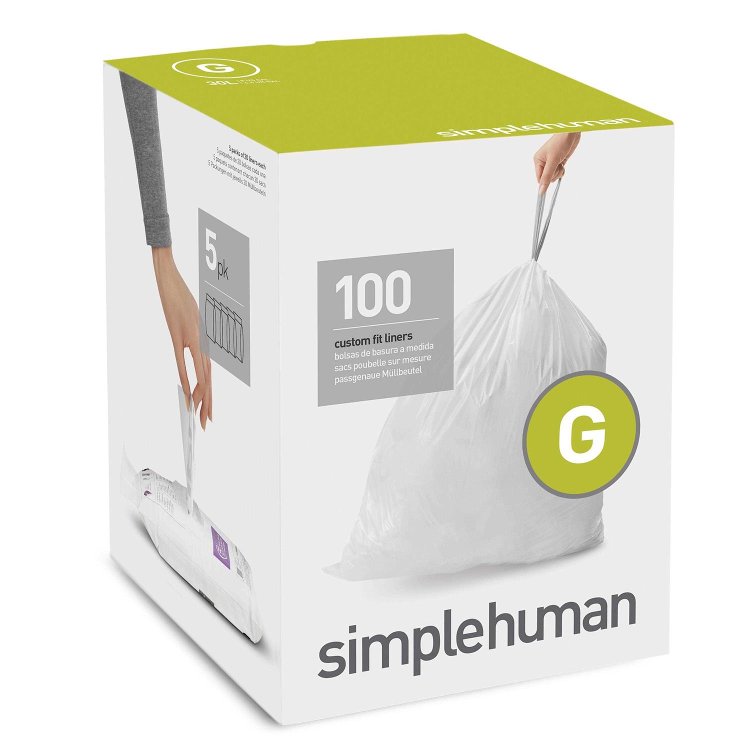 simplehuman Code G Custom Fit Drawstring Trash Bags in Dispenser Packs, 100 Count, 30 Liter / 8 Gallon, White