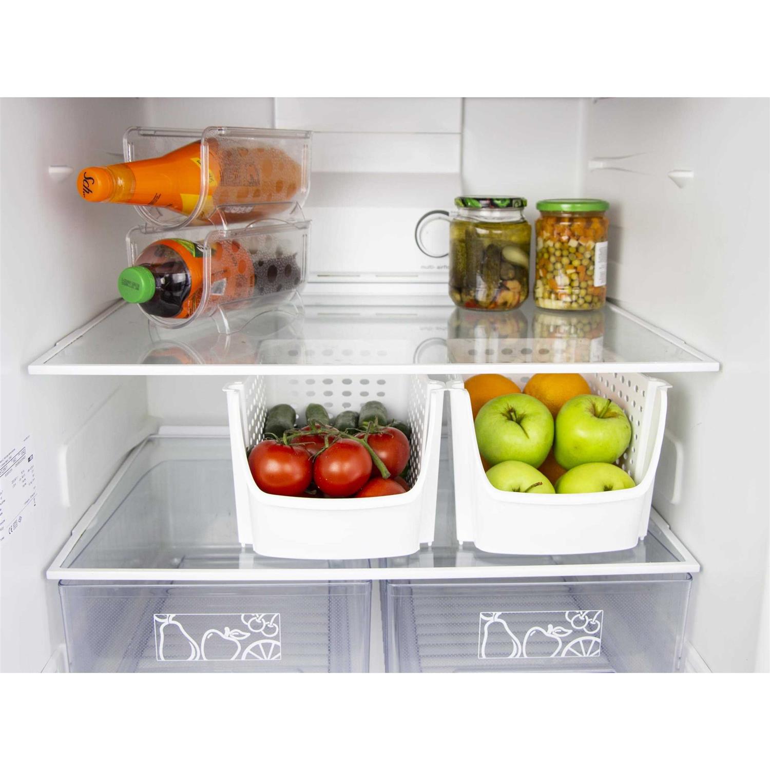 Stackable bins hold foods, toys, utensils, and toiletries without bending off. with oval-shaped mesh side SPACE SAVING