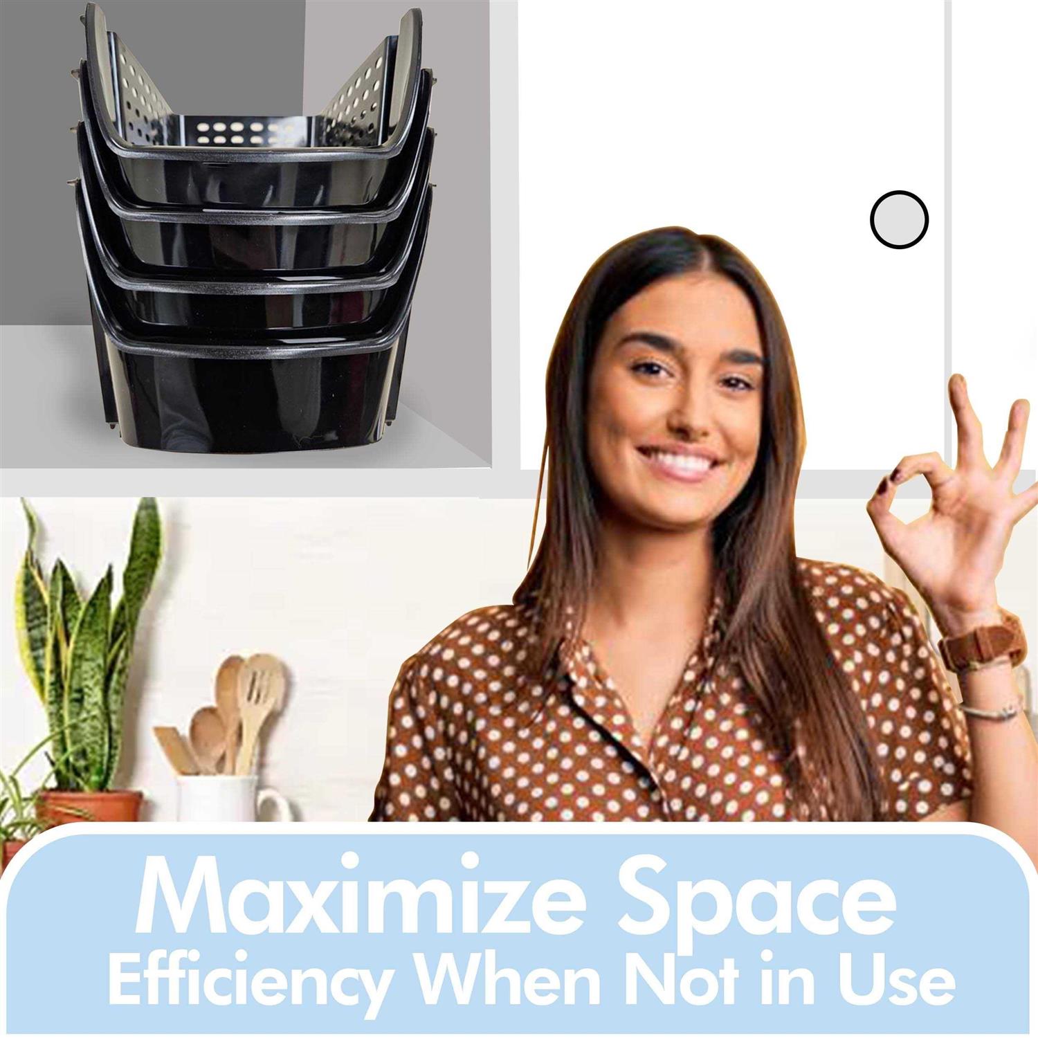 - Fit in small corners or areas like kitchens, bathrooms, bedrooms, and offices. Nestable when empty to save more space.