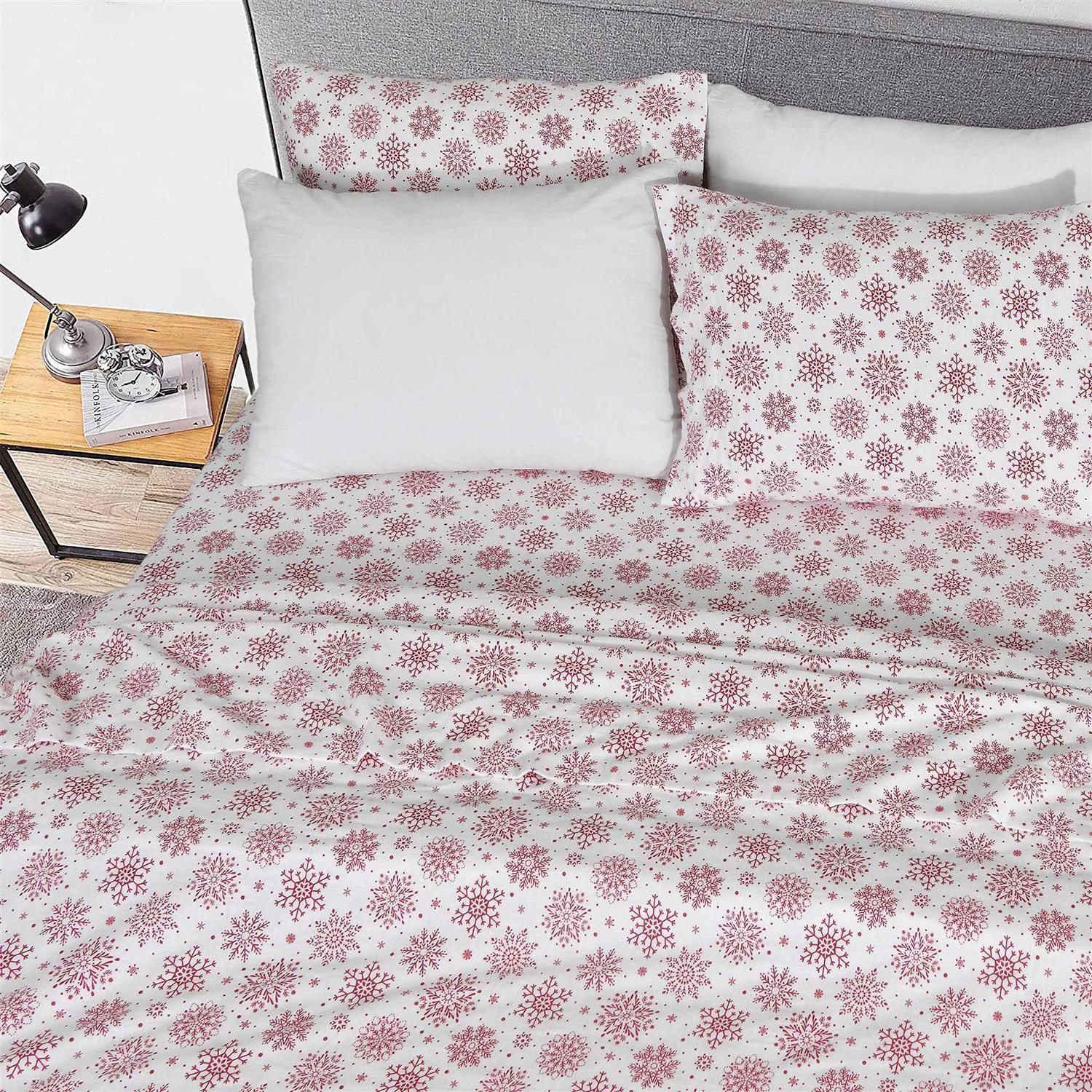 Sleepdown 100% Cotton Queen Sheet Set – 160 GSM Soft and Cozy Flannel Deep Pocket Bed Sheets – Merry Flakes