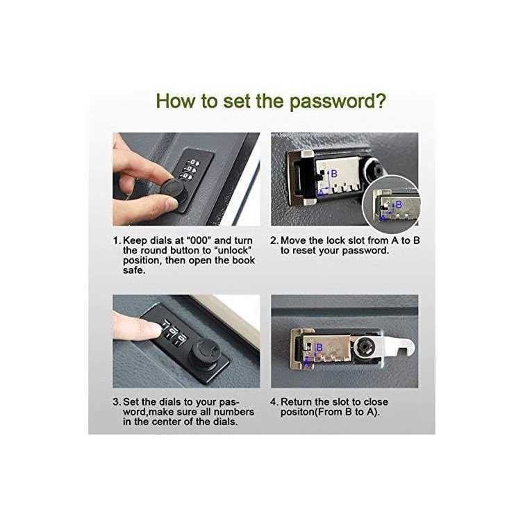 - Looks like a real book and will blend seamlessly into your bookshelf contains a metal safe with combination lock