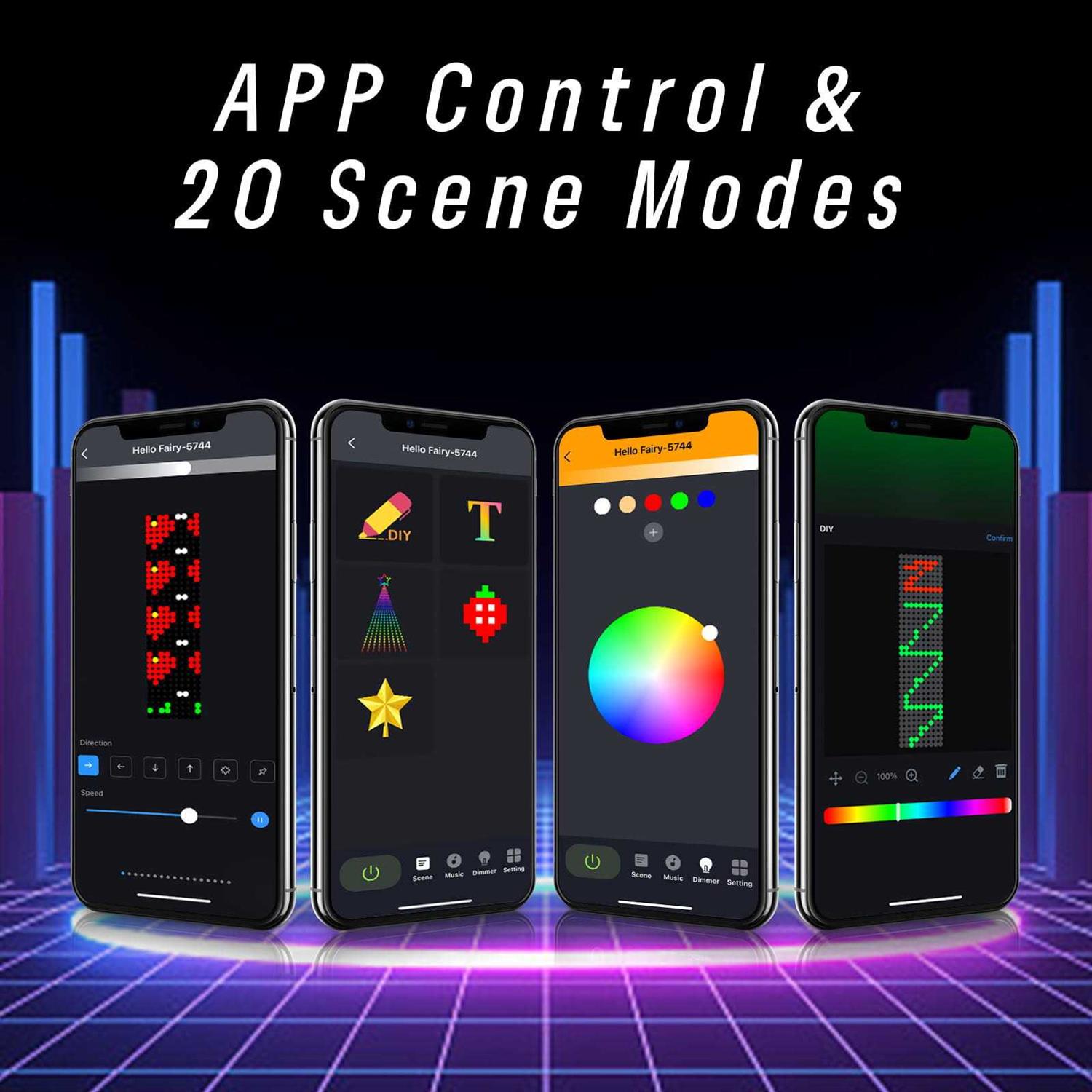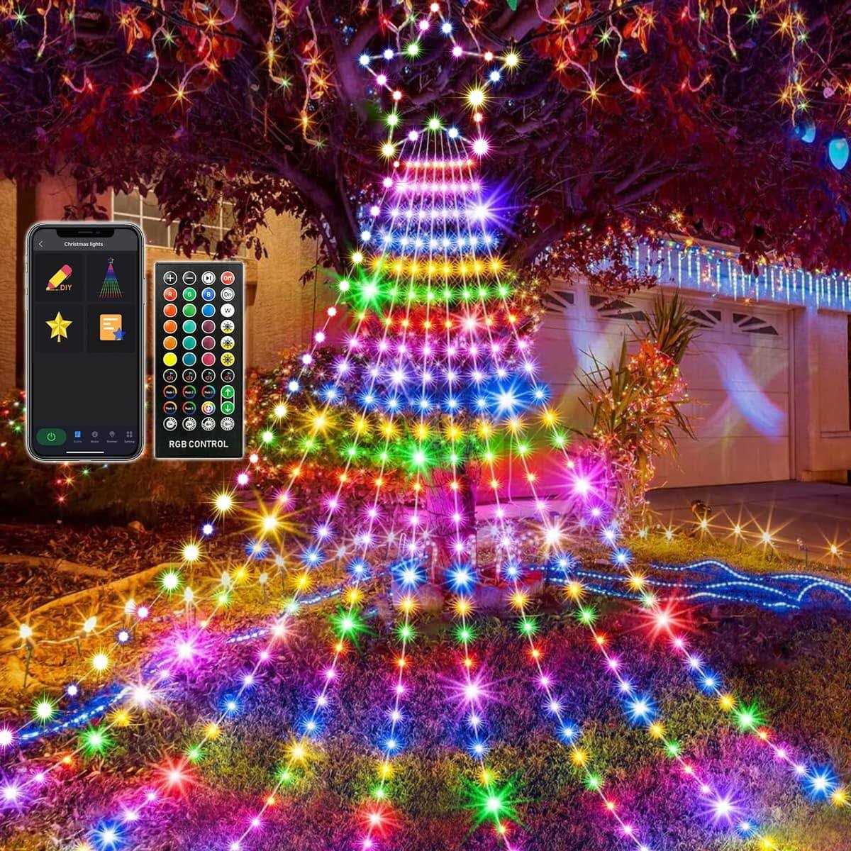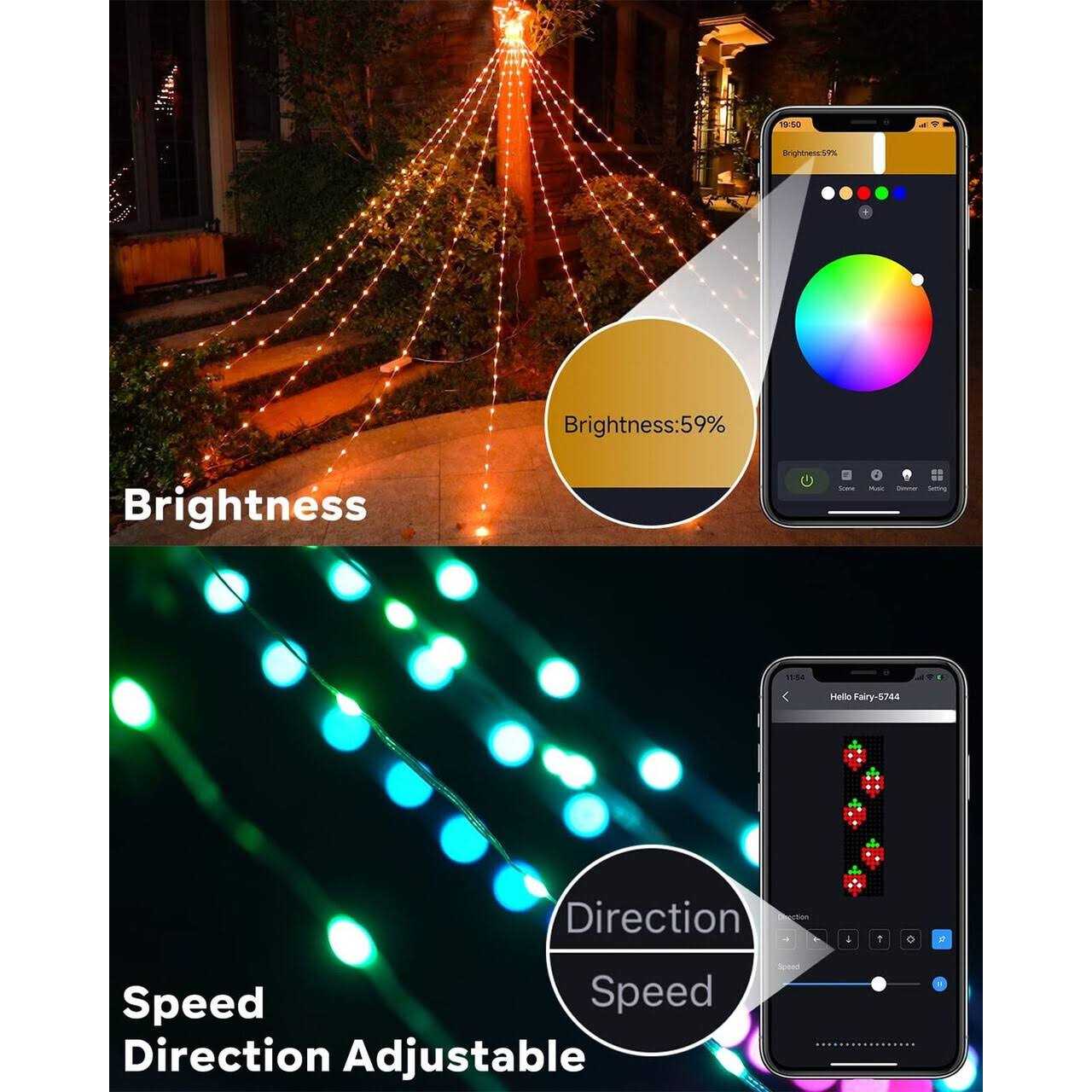 2022 New Upgrade Smart APP & Remote Control The smart outdoor christmas decorations can not only control by Bluetooth app “Hello Fairy”, but a remote control, Customized led display different colors and scene modes, creating an atmosphere of Halloween, Thanksgiving, Christmas, New Year, wedding, birthday. Great holiday decor dnd will be complimented by the neighbors. Easy and Independent Control Topper Star String Lights Avatar Controls christmas decorations outdoor yard can select two states follow or static. 344LEDs,1 top 20 leds star string lights and 9 strand strings of 36 led each, each 11.8 feet long, Plug cable length:9.8ft. resembling a comet. Light up your house or backyard with the Christmas star fairy lights, pack up for easy carrying and storage. DIY Lighting Activate your LED Waterfall Tree Lights with Hello Fairy app. DIY all leds, every led is a pixel that can be controlled individually, choose from 16 million colors and warm white to customize the colors of each bulb and enjoy lighting in your garden or patio,jazzing up your outdoor decor. Music Mode Built-in high sensitivity mic, dance the night away as the string lights react in real time to your songs. With large yard decorations outdoor, don’t only hear your music, but live it with beautiful dynamic lighting. Creating a vibrant experience to liven up any party or get-together. Dimmable + Timer + Color Changing Stepless dimming from 1%-100% brightness to meet your need. Create customized timer to automatically turn on or off your unique christmas decorations indoor. Enjoy romantic evenings, parties, and family gatherings in a stylish, comfortable environment.( NO DIMMER NEEDED) Ideal Gift & Decoration Choice 11.8ft IP44 waterproof led string light is long enough to decorate your Xmas tree, outdoor, house, indoor, bedroom, patio, porch, patio, lawn, garden, backyards, pergola,market,balcony, Bistro, pergola, gazebo, tent, wedding, birthday, party and other festivals perfectly, light up outdoor christmas decorations, creating a cozy, happy and romantic atmosphere for your garden. Great halloween decorations.