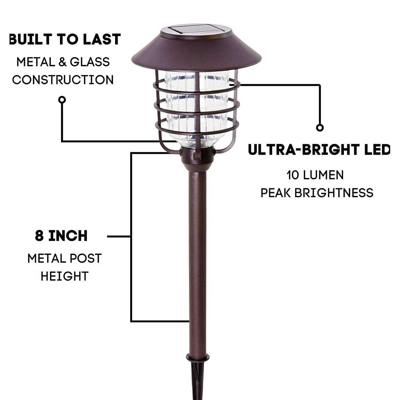 Smartyard 8 LED Solar Pathway Lights Bronze Over SS Finish -10 Lumens – 10233-CH