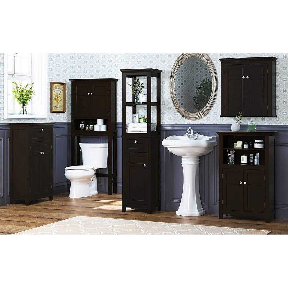 Add function and style to your bathroom with the Spirich Home Bathroom Cabinet Wall Mounted with Doors and Shelves. Crafted with quality MDF, this durable and stable bathroom wall cabinet features an adjustable interior shelf to keep your home tidy. The decorative molding and double door design bring a modern and elegant look to any home, while the versatile space can be used in the bathroom for toiletries or in other rooms to fill empty wall space. Chrome-finished knobs add a beautiful touch to this stylish and functional toilet wall cabinet. Features: Quality MDF construction for durability and stability Adjustable interior shelf for organized storage Versatile space for storage needs in various rooms Decorative molding and double door design for modern and elegant look Chrome-finished knobs for added style