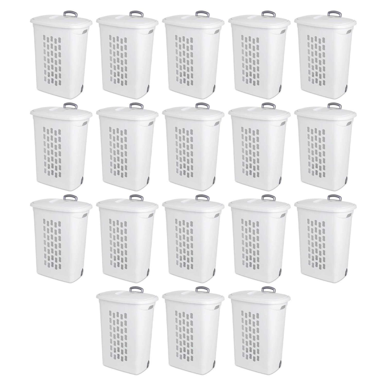 Sterilite White Laundry Hamper with Lift-Top Wheels and Pull Handle 18 Pack
