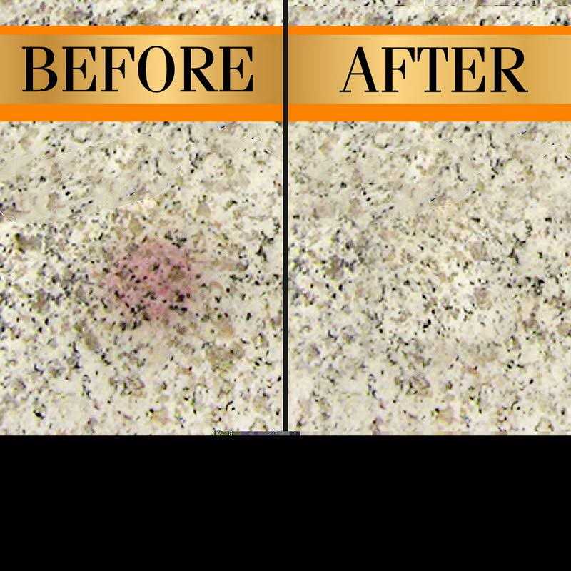 - Stain Remover – food, coffee, red wine, ink, mildew, oil stains, and more from stone surfaces
