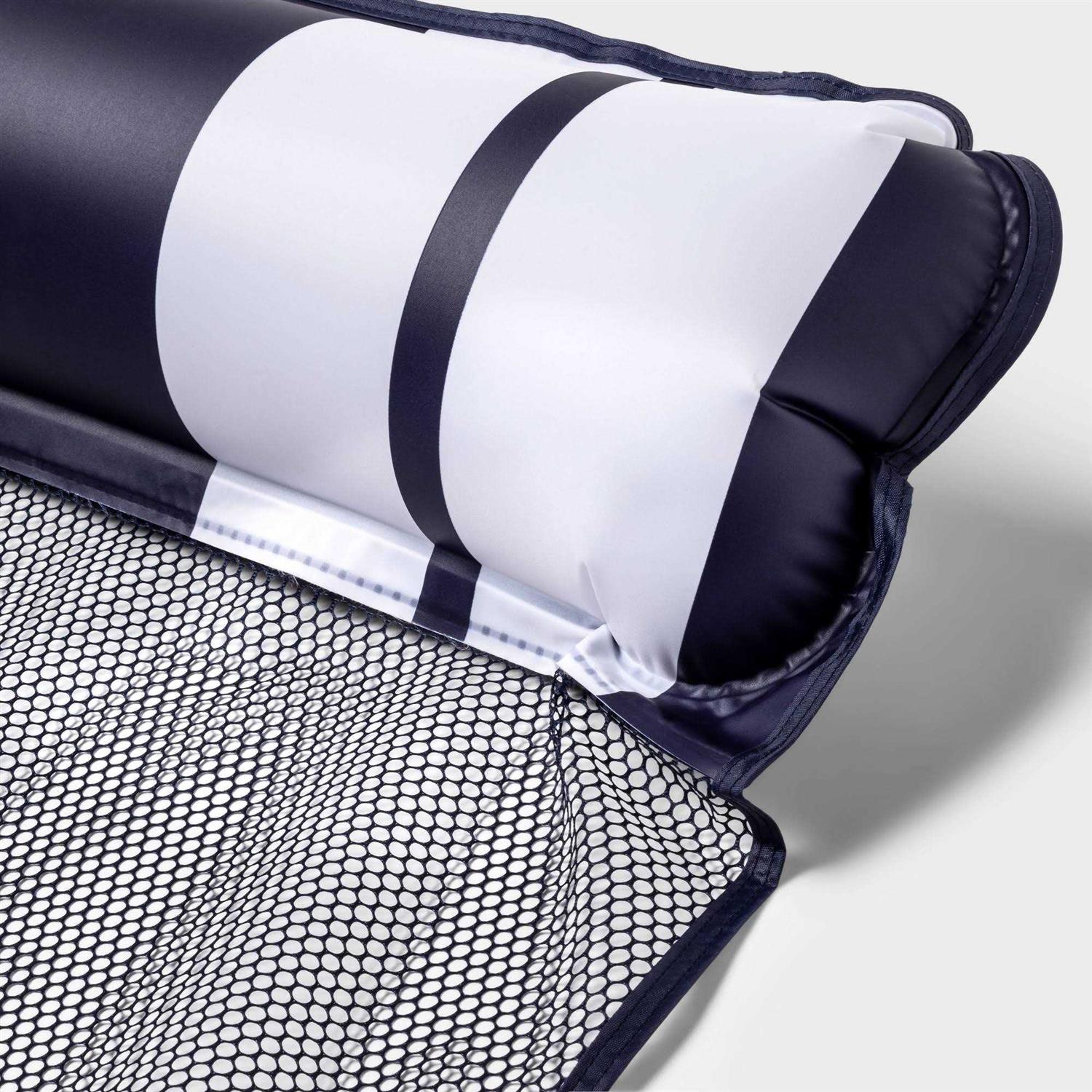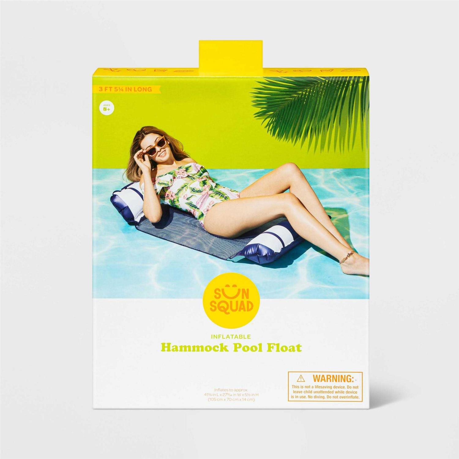 Soak up some sun in style on this Inflatable Hammock Pool Float from Sun Squad. This inflatable pool float is designed in a rectangular silhouette and it features a mesh bottom to keep your body below water for a cool feel and relaxation. The slightly raised ends offer you a comfortable spot to rest your head and legs as you stay afloat. Easy to inflate, simply set it in your backyard pool or on a lake to enjoy the outdoors while staying cool. Sun Squad: Ready for fun.