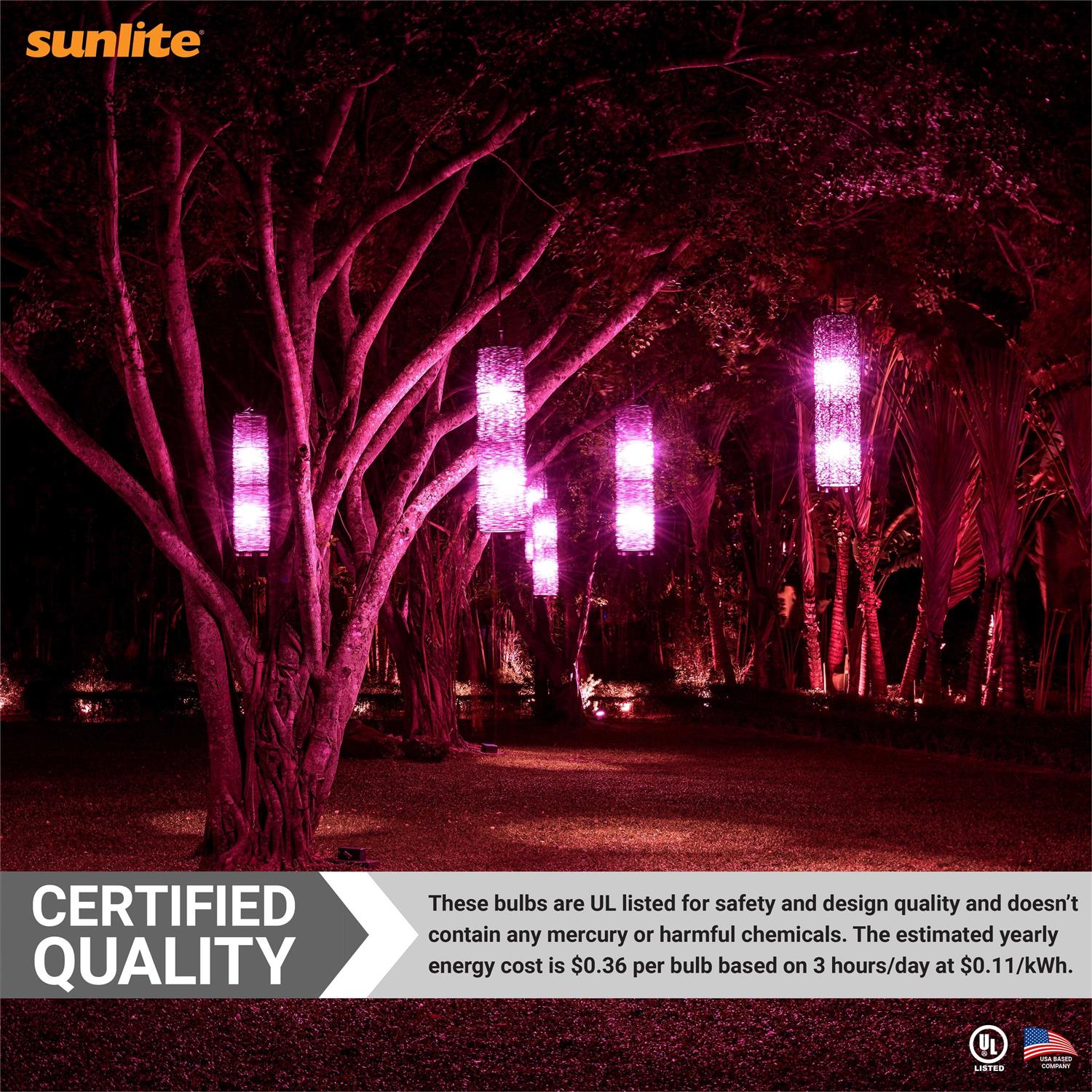 The Sunlite LED Colored A19 lamps deliver a beautiful vivid color. Consuming only 3 watts of energy, they offer significant energy savings. Ideal for parties and events. Featuring a Medium base, they are designed to fit in a variety of applications. With a lamp life of 25,000 hours, they can replace up to 20 colored incandescent bulbs.
