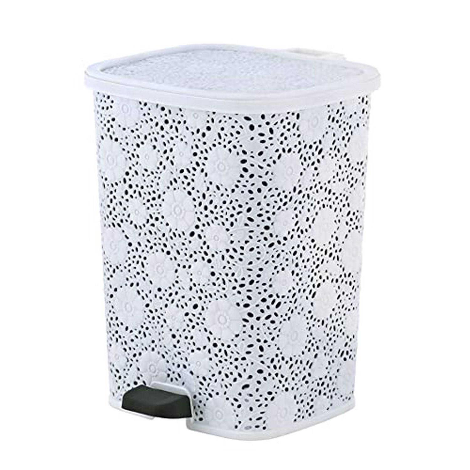 Give your office, bathroom, guestroom or master-bedroom a stylish look with this lace designed compact trash can. Comes with a strong foot-pedal that opens it easy with a step of your foot. It is made with a separate interior can which smoothly slides out for easy wash and use. It is also available in bigger or smaller sizes .