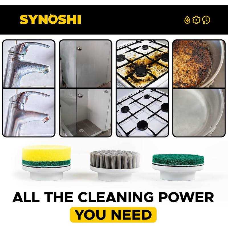 - Clean your home faster and easier with the Synoshi cordless, handheld electric scrubber.