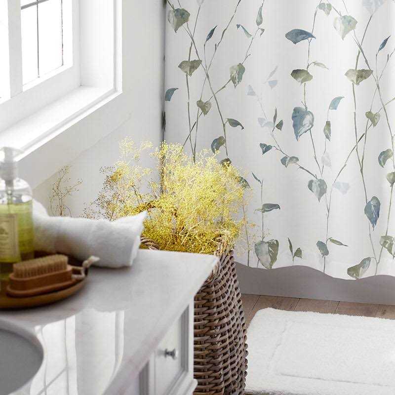 Bringing understated beauty to the bath. Our shower curtain is dappled with vining leaves in pale blue and sage green. Complete the sophisticated look with our matching Autumn Leaf bedding, sold separately. Color: WHITE MULTI.