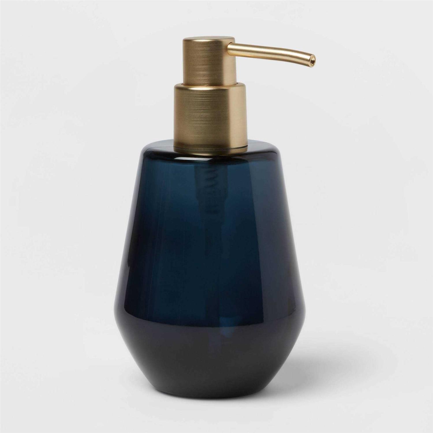 This four-piece bath coordinates set includes a toothbrush holder, canister and tray as well as a soap dispenser to complete your bathroom countertop setting in coordinated style. Made of glass with a frosted finish, this blue bath coordinates set comes complete with a gold-tone lid and pump for a striking contrast that blends seamlessly with your modern decor. Place this bath coordinates set in your bathroom to hold your everyday essentials and lend an attractive look to your space.