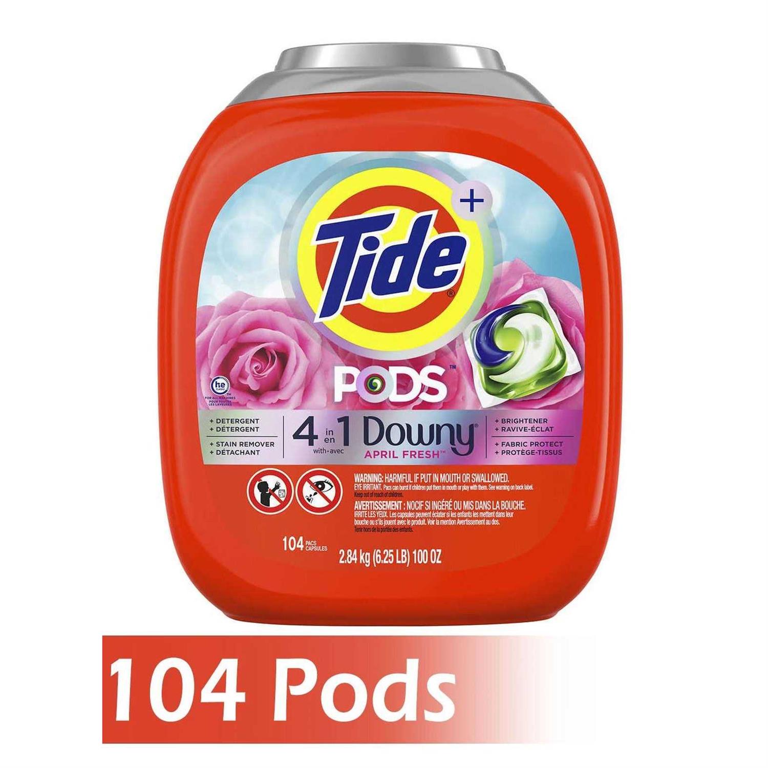 Tide Pods Liquid Laundry Detergent Pacs with Downy, April Fresh – 104 ct