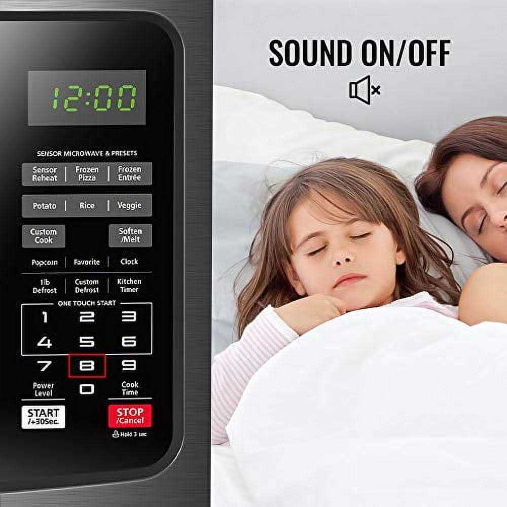 This Toshiba 1.2 Cubic feet 1100 watt Black Stainless Steel microwave is the ideal size for apartment kitchens or office break rooms. Sensor reheating lets you optimally cook six of the most popular food items with the touch of a button. Choose from ten power levels up to 1100 watts. The large digital display has a clock function and can also display a countdown timer as well as the cooking time remaining. Program up to three favorite time and power combinations for additional one-touch convenience. Easily open or close the microwave with the large, easy-to grip door handle. The Black Stainless Steel exterior looks good in any kitchen. The microwave can be turned on for one to six minutes at 100 percent Power by simply touching the number of minutes you would like to cook. If additional cooking time is needed while the microwave is running, press the start button to add an additional 30 seconds of cooking time.