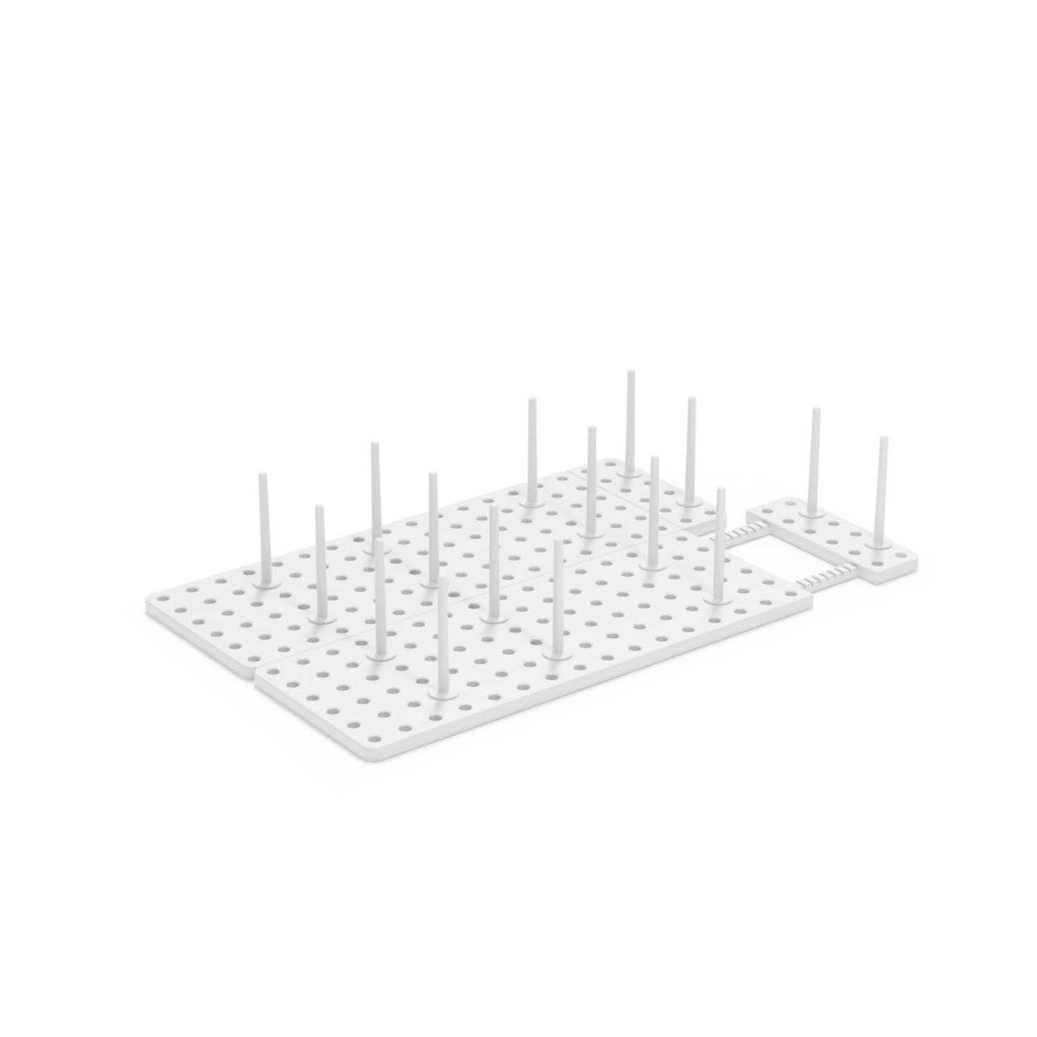 The Umbra Peggy Drawer Organiser is a versatile peg system that allows you to easily organize your drawers. It accommodates serveware and cookware of all shapes and sizes, and can be reconfigured to suit your changing needs. The Umbra Peggy Drawer Organiser is the perfect solution for decluttering your drawers. With its innovative peg system, you can easily arrange and rearrange the pegs to create custom compartments for your cookware and serveware. The pegs lock securely into the pegboard, ensuring that your items stay in place. Each board measures 45cm in length, 15cm in width, with the length expandable up to 54.3cm, providing ample space for all your essentials. The peg height is 10cm.