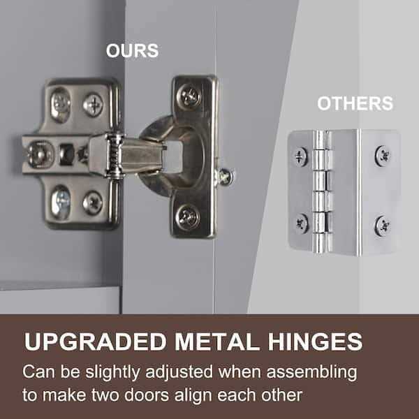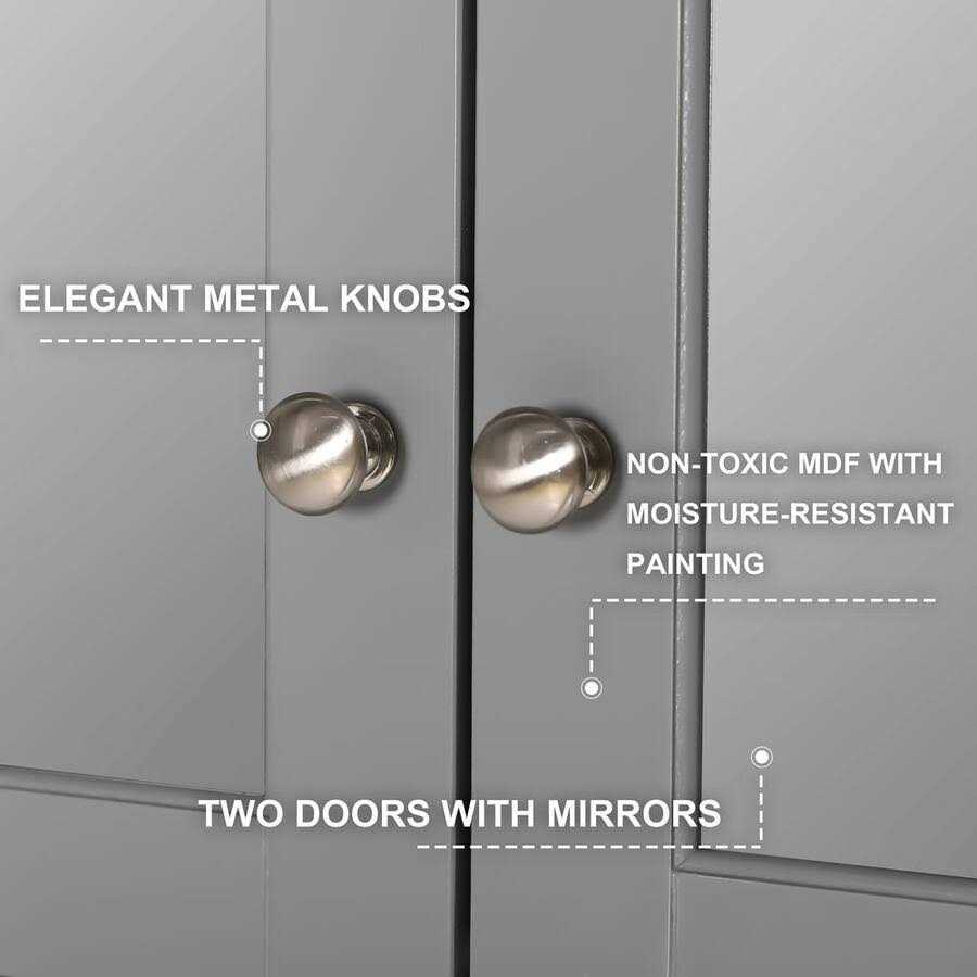 This oversized bathroom storage wall cabinet with mirrors has 2 removable and adjustable 5-level shelves, which would be a perfect solution for small limited space to store daily essentials and tools. 3 unique compartments at the bottom provide you more space for small limited room. Turning into one open space by removing the shelves inside so that you can DIY your storage space. Premium unique metal hinges can be slightly adjusted during assembly to make two doors align each other. The assembly is quick and easy. So no need to worry about the assembly with the detailed instruction included. Color: Gray.
