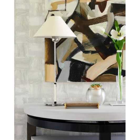 A splash of chic charm for the side table, console, or desk. Match the delicate quality of your décor with the trim design of the Hackney Table Lamp from Visual Comfort Signature, formerly known as Visual Comfort, The table lamp’s refined design pleases the modern and contemporary setting. It rests on the table surface with a low-profile circular base. An angular and rounded column gives the piece its height with an enduring brass construction. The crisp reflective note of the brass makes the lovely white shade on top pop with visual contrast. While blocking glare, the tapered shade helps cast a warm glaze over the table surface when turned on.