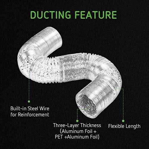 EFFECTIVE VENTILATION: Powerful blower with a fan speed of 2300 RPM for an air flow of 190 CFM. Moves air through your target location efficiently for optimal ventilation SUPERIOR CARBON FILTER: 1050+ RC 48 Australian Virgin Charcoal Bed. Dimensions: 4″ x 14″ EFFECTIVE Smelliness CONTROL: The carbon filter eliminates some of the most undesirable smelliness, pungent smell and particulates from indoor grow tent, hydroponics grow room. STURDY DUCTING+ 2 Stainless Clamps: Strong, flexible steel wire supports heavy duty triple layer duct walls.PET core is sandwiched in layers of fire-retardant aluminum that can handle temperatures from -22 to 266 Fahrenheit. ULTRA RELIABLE & ACCURATE THERMOMETER & HYGROMETER: are able to quickly report measurements every 10 seconds and has a wide measurement range of 14°F to 122°F(-10°C~50°C), with a temperature accuracy range of around ±0.1°F (±0.1°C). Humidity sensor measures humidity from 10% to 99%, humidity accuracy range around ±5%.