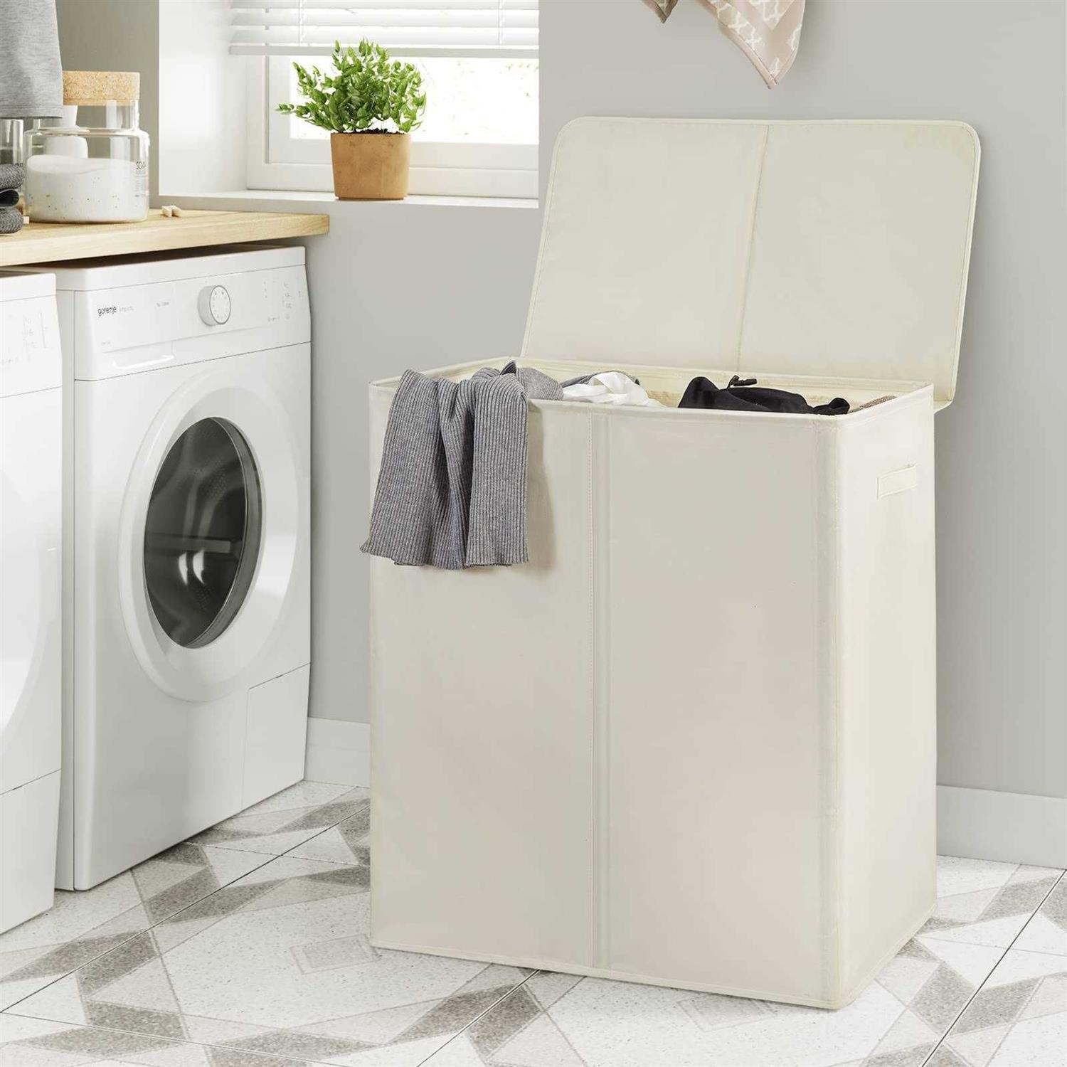 【 Sturdy Lid 】Each hamper has a fixed and sturdy lid that is easy to open and close.Flip down to hide the smell and keep clothes out of sight, making your space look nicer and cleaner, and you can decorate your home with some common items on the lid. 【 Easy to Laundry 】Each laundry hamper with lid is equipped with 2 remove liner bags, conveniently taken out of the liner bag secured from the hamper and carry it to washer.The liner bags are made of high-quality stitching process, it can also be used as a clothing storage bag. 【 Double Compartment Structure 】Divided laundry hamper makes it simple and easy to sort and organize clothes,with 2 sections separate the darks from lights,you can put your dirty clothes in the right basket. 【 Stable and Durble 】 The laundry basket is made of high-density 600D Oxford thicker fabric. Compared with the non-woven material of other products, it can provide longer-lasting strength and more wear-resistant. Six fiber rods can keep the laundry basket upright and will not be deformed due to excessive clothes. 【 Super Spacious Capacity 】The overall size of the dirty clothes hamper is 24.8×14.2×26.8in, and the capacity is 154L, perfect storage size, can hold more dirty clothes. The capacity of each compartment is 77L,which can bear about 2 loads respectively. Designed to make your life easier and your space tidier, the WOWLIVE 154-Liter Fabric Double Laundry Hamper is a game-changer for any home. Keep your laundry out of sight and discreetly concealed with the sturdy and fixed lid. Close the lid to conceal odor or loads of laundry, or leave the lid open and hang items over the front as a display. Transporting your laundry is a breeze, thanks to the convenient side handles and the collapsible design is perfect for slim storage. The 2-section design allows you to separate darks from lights, making laundry day a breeze. The 2 included removable liner bags with handles make laundry tasks even more convenient, and they can double as clothing storage bags. Constructed with high-density waterproof fabric, this hamper is built to withstand the test of time. The thicker wear-proof material ensures longer-lasting strength, while the 6 fiber rods keep the hamper upright, offering a durable structure for loads of all sizes. Make laundry day easy-peasy and create a neater living space with the WOWLIVE 154-Liter Double Laundry Hamper.